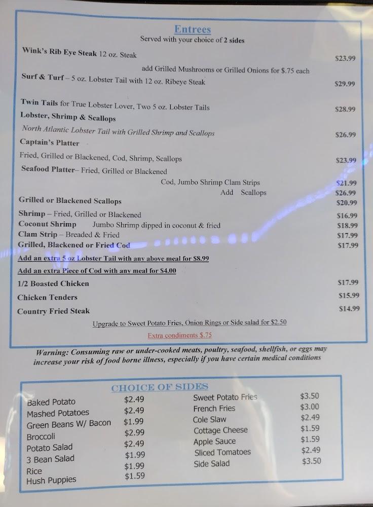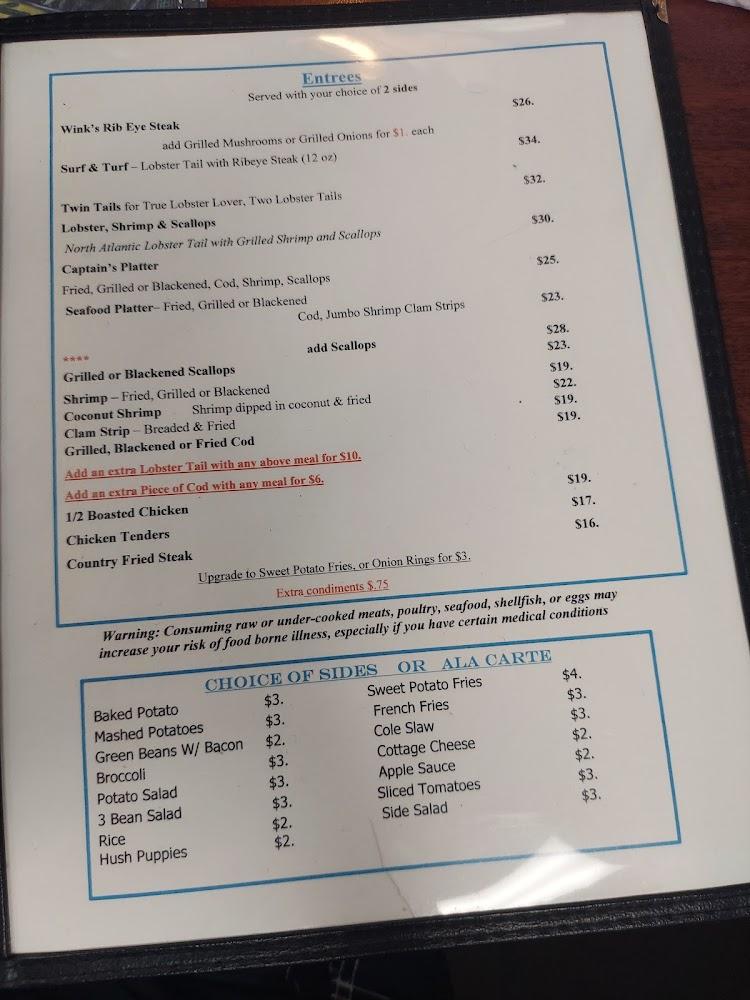 Wink's Old Town Grill menu features a mix of seafood and traditional breakfast options. The highlights include seafood, shrimp, and tasty sandwiches. Breakfast is served all day, with eggs benedict and French toast stealing the show. Both lunch and dinner offer a variety of choices that cater to different tastes. Small plates are perfect for sharing, giving diners a chance to explore more flavors. Desserts are made in-house, featuring delicious cakes and pies. Overall, the menu is designed to accommodate all, from kids to seafood lovers.
